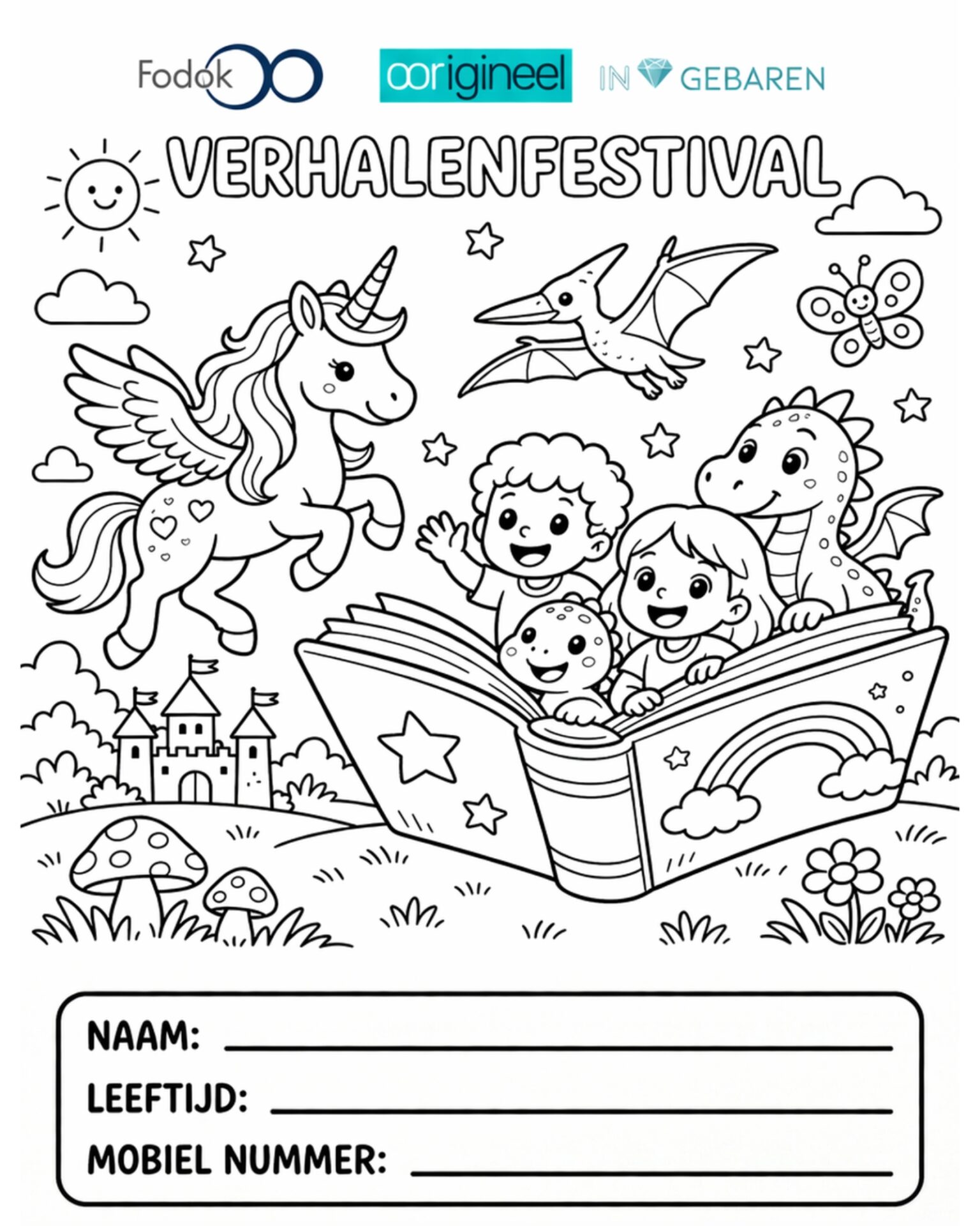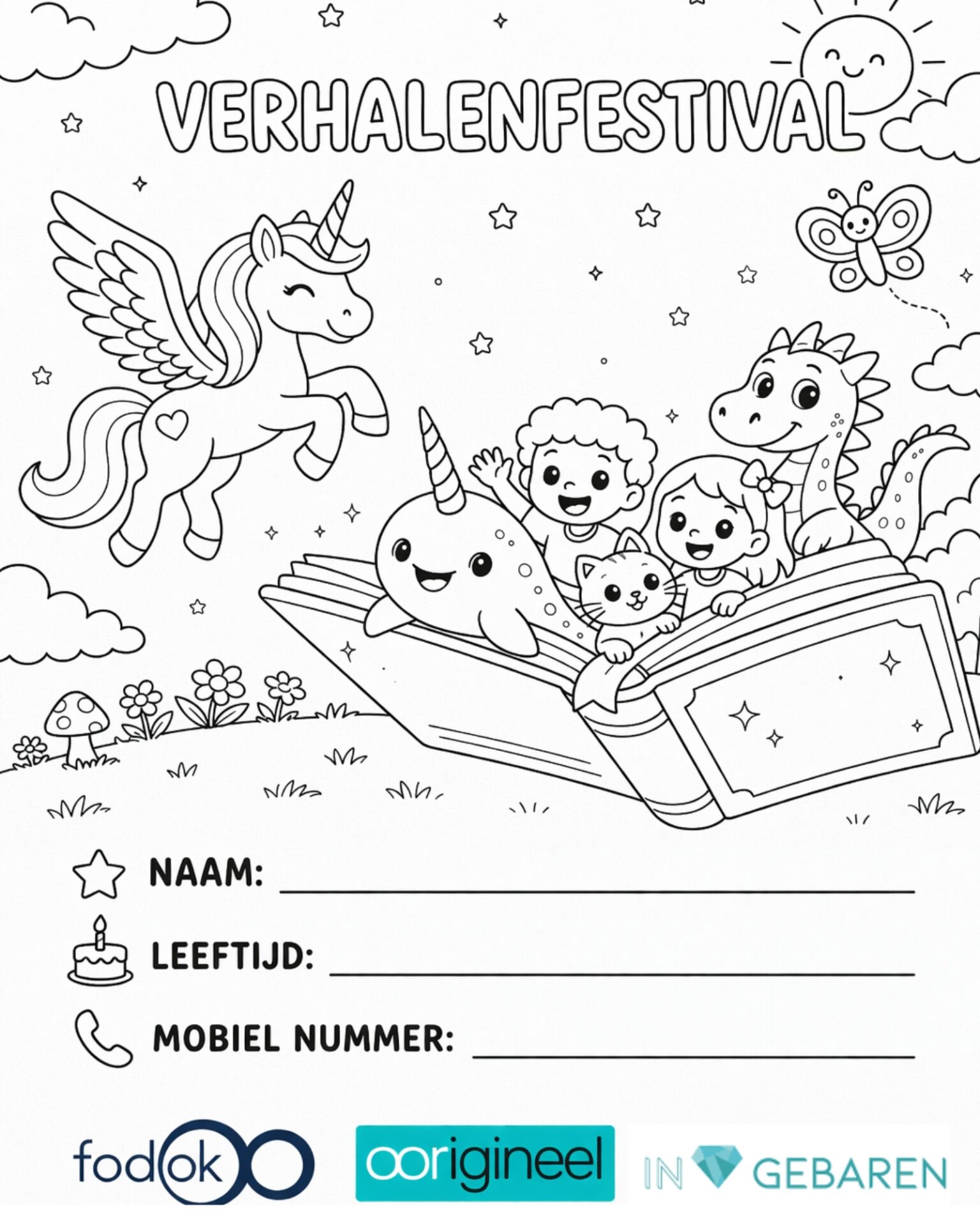 Download de kleurplaat via de link hieronder. Print hem uit en kleur hem thuis in. Maak kans op een prachtige prijs tijdens het Verhalenfestival 🎁